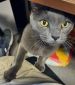| Description | Short hair gray, yellow eyes, front declawed, believe to be female, very friendly and likes to sit on lap and knead. Have safe inside. Would like to find his/her home. | |||