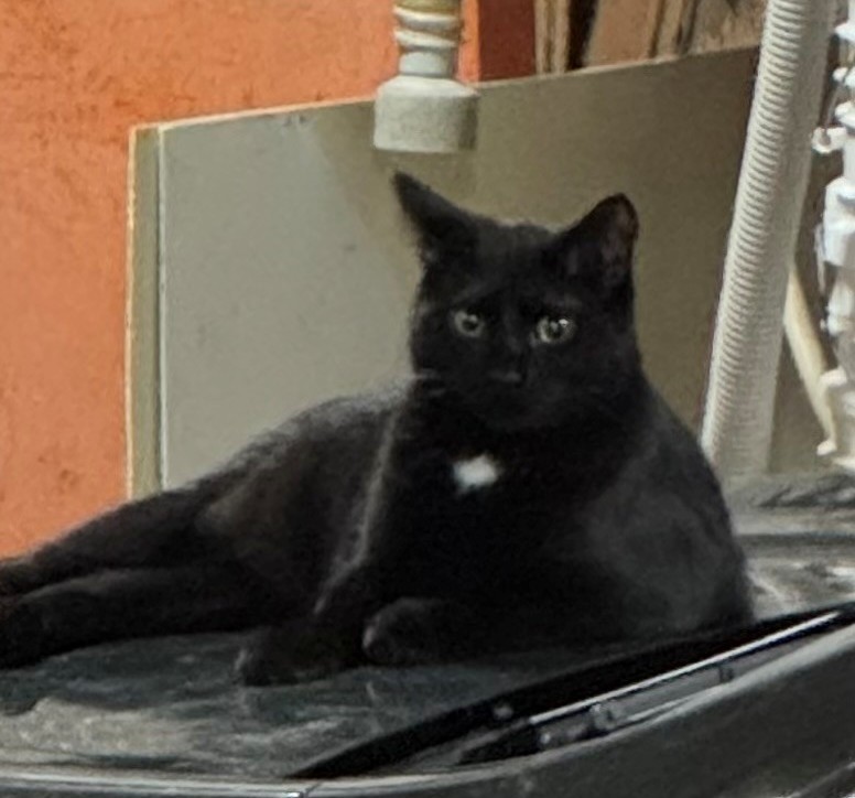 | Description | Large black 3 year old cat. Tipped ear. Wearing black reflective collar with bell. | |||